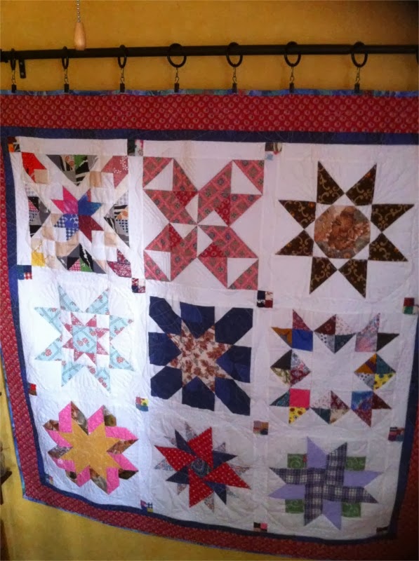 .....att sparka igång den här stackars bloggen igen. Nu är det snart ett år sen senaste inlägget och jag kan ju börja med att visa det färdiga resultatet av Bee in my Bonnets Row-Along.